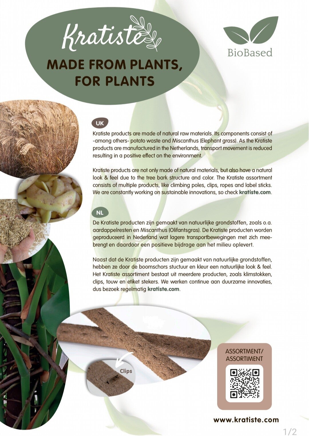 Eindelijk... plantenstokken zonder micro-plastic! Een biologische afbreekbare klimstok. Hoe mooi is dat! Gemaakt van aardappelenschillen (afkomstig van de fabriek voor friet) en Miscanthus Giganthus (dit staat langs de snelwegen om stikstof te reduceren).