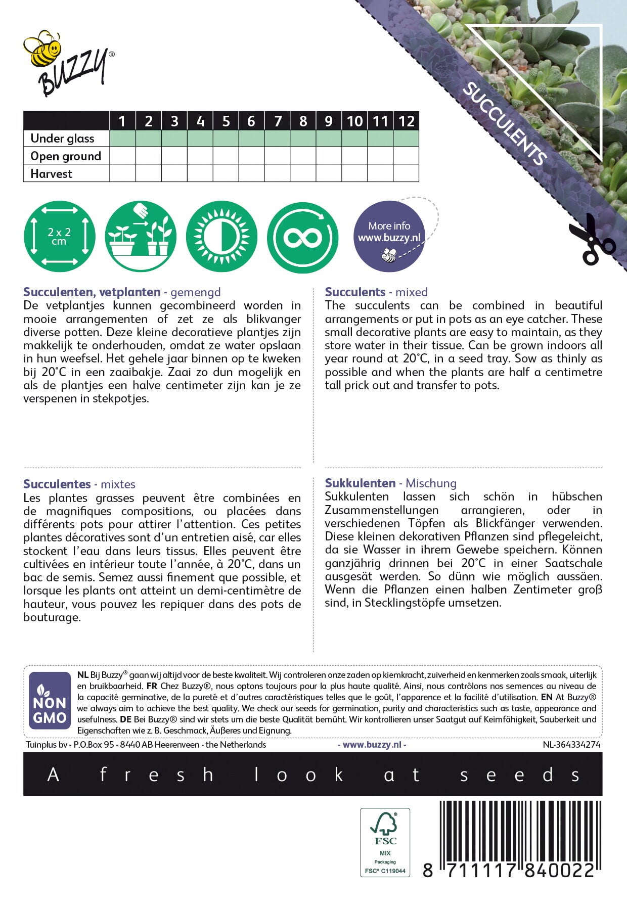 - Het gehele jaar binnen op te kweken bij 20°C in een zaaibakje. Zaai zo dun mogelijk en als de plantjes een halve centimeter zijn kan je ze verspenen in stekpotjes. In het zakje zitten circa 7 zaden